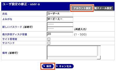 | 備考 | ユーザに関する情報やコメントを記入できます。 |